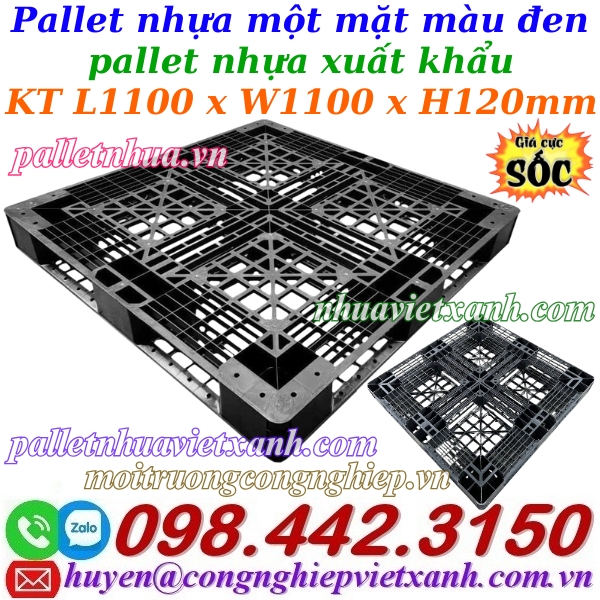 Pallet nhựa một mặt màu đen hàng mới 1111120 – pallet nhựa 1100x1100x120mm hàng mới màu đen – pallet nhựa xuất khẩu